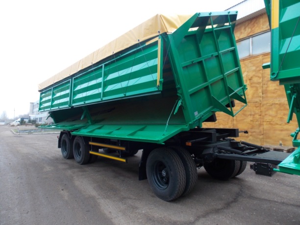 Самосвал, ручное запирание бортов, верхний ряд боковых бортов подвижный с верхней навеской, нижний ряд бортов подвижный с нижней навеской.Средней стойки нет, две опоры, один гидроцилиндр (по выбору). Пол стальной.