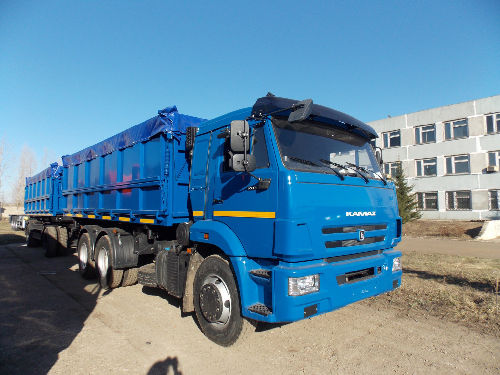 Самосвал КАМАЗ 65115 с 2-х осным прицепом