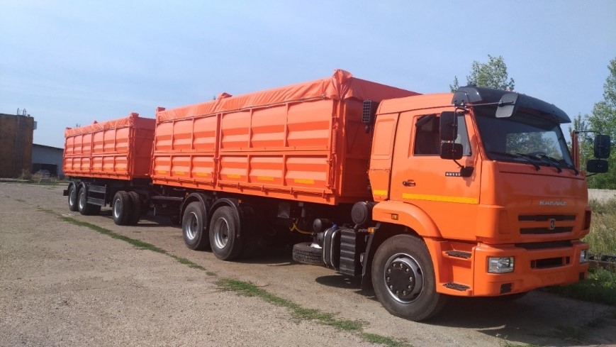 Зерновоз самосвал на базе шасси КАМАЗ 65117 с прицепом.